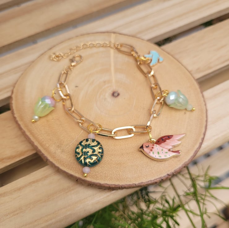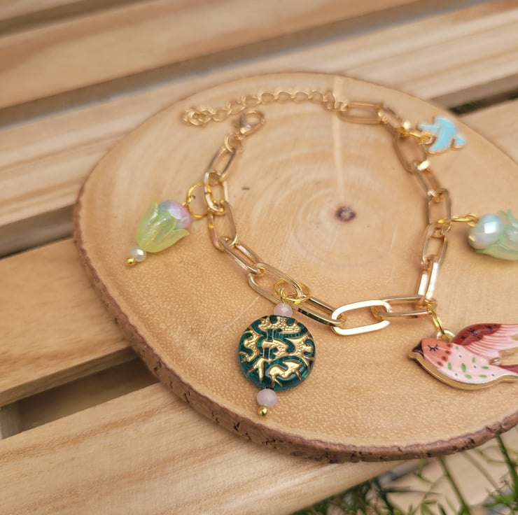 Made with broken jewellery, charms and stainless steel jump rings/pins. Chain: 201 stainless steel/18K Gold Plated Titanium Steel Length:18cm plus 5cm extension chain.