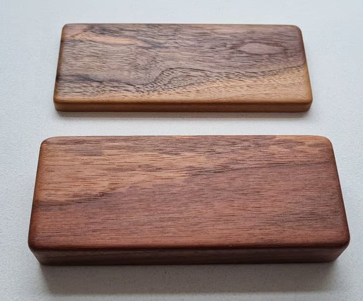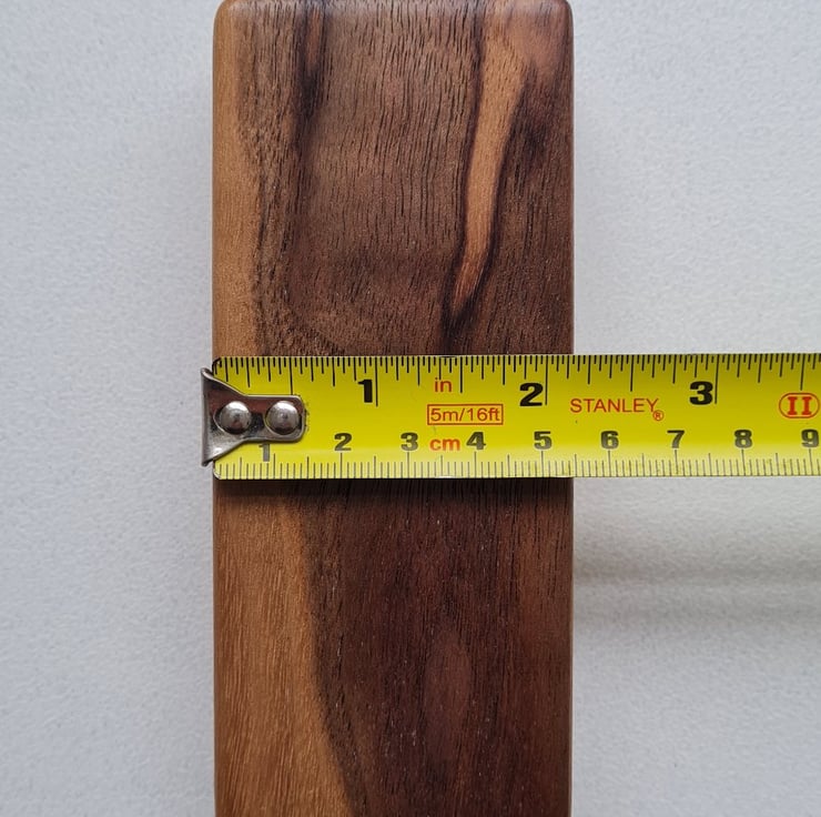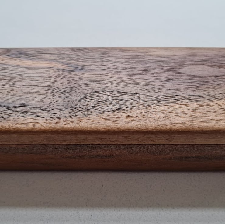 Handmade by us here in the UK, each box is carefully shaped from characterful Walnut, chosen for its rich grain and natural warmth. The wood is lovingly finished with a natural food-safe wax oil, giving it a smooth, tactile feel while enhancing the unique patterns that make every piece one of a kind.