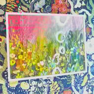 This piece is all about contrast and energy, I've layered cool blues, with soft zesty lime greens to create a sense of freshness, then highlighted the scene with hot, vibrant pops of colour. To keep the piece feeling light and airy, I've added loose, expressive mark-making, these intuitive strokes that capture the imagination.