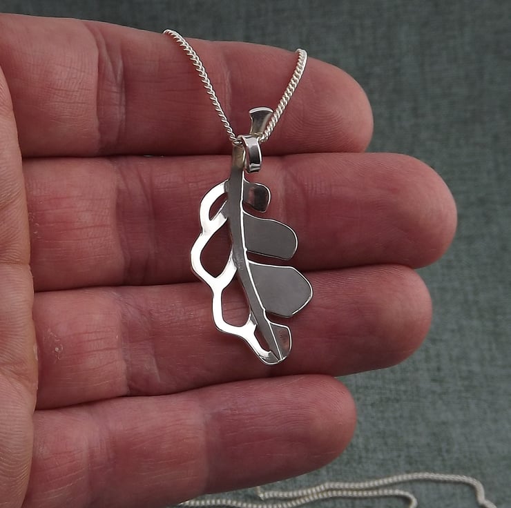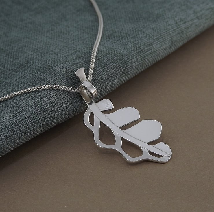 A sterling silver oak leaf pendant necklace inspired by strength, endurance, and the natural world - handmade from recycled silver in the UK. Part of the Nature's Spirit collection, a series celebrating wildlife, natural elements, and quiet symbolism. This design is available in several sizes within the Nature's Spirit collection, allowing you to choose a more delicate or more prominent version depending on how you like to wear your jewellery.