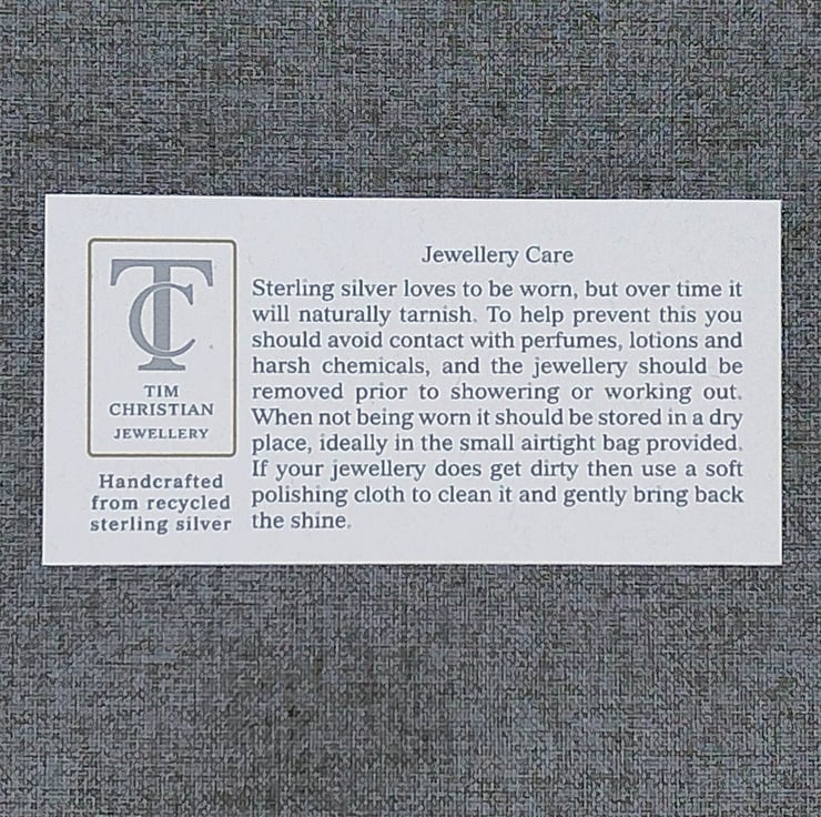 Handmade silver jewellery, crafted slowly in Shropshire using recycled materials. Orders are carefully made and packaged with sustainability and long-term care in mind.