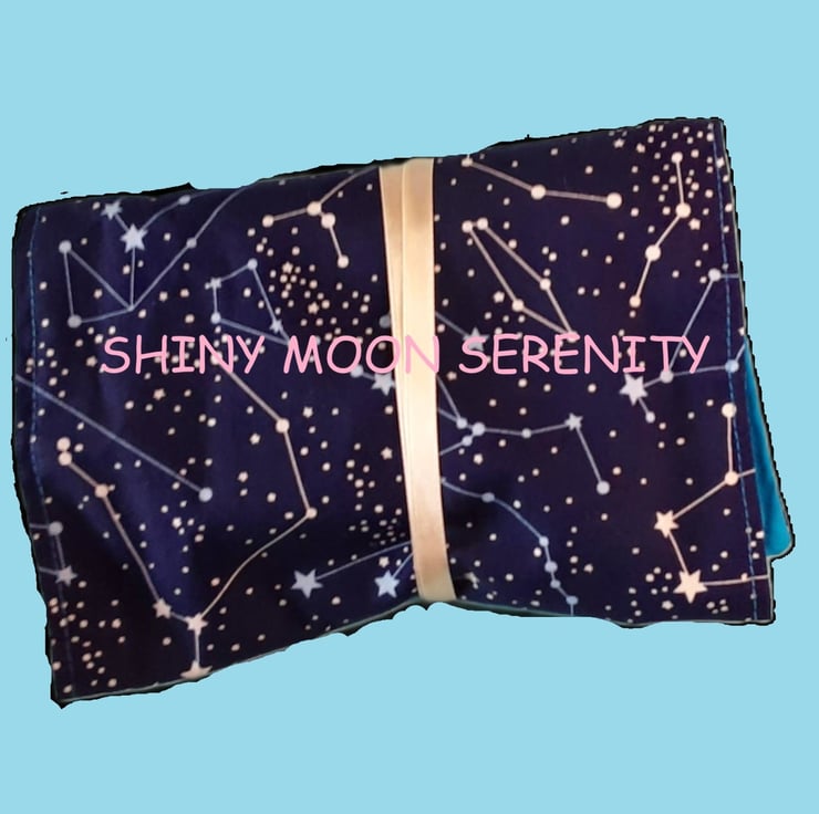 Tarot Reading Mat & Wrap with Pocket. Star Constellations printed in White & light blue on Navy background. 100% Cotton poplin.