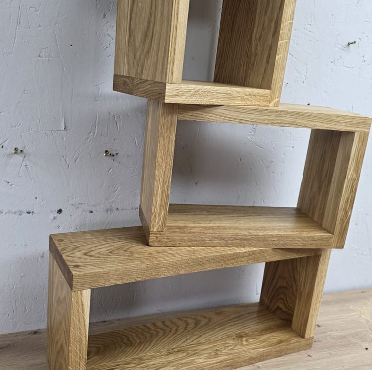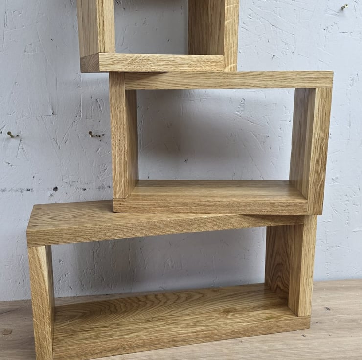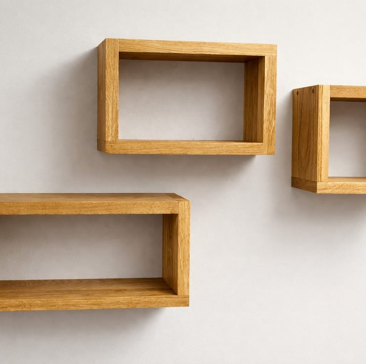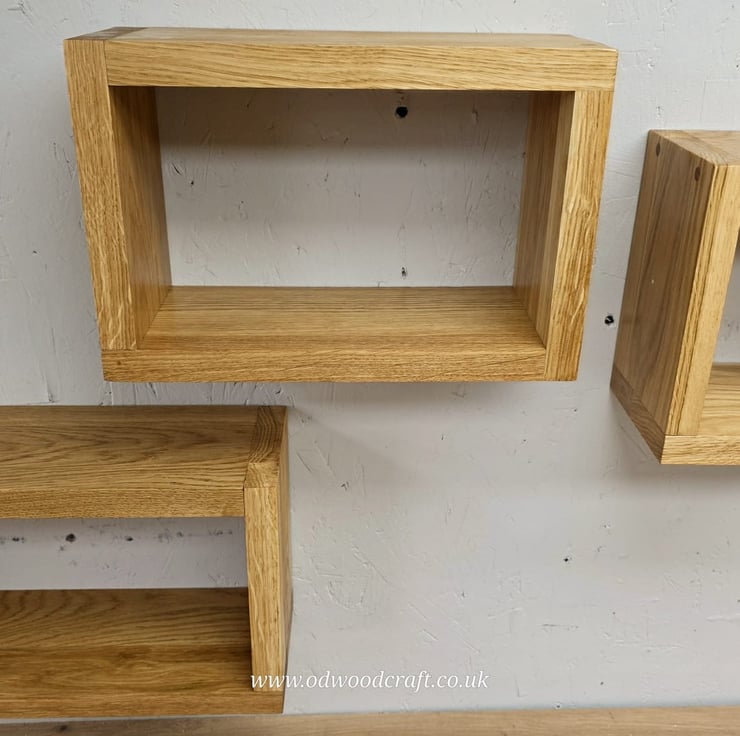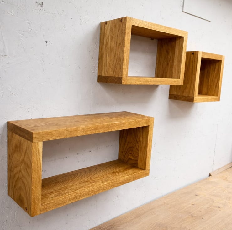 Handcrafted set of 3 solid oak cube shelves, made from 22mm thick oak with a clean, modern design.