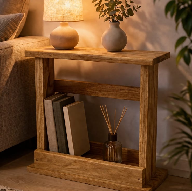 This solid oak side table is designed to fit neatly beside your sofa without taking up much space.