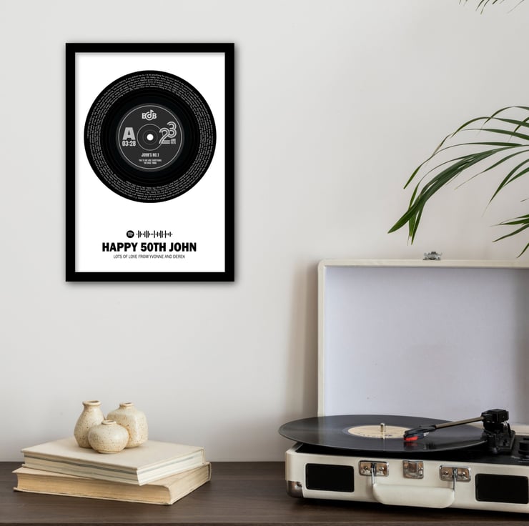 Available either as an A4 print on its own or framed and ready to display, it is a vibrant, long lasting piece that suits music lovers, retro fans and anyone who appreciates a personalised gift with meaning.
