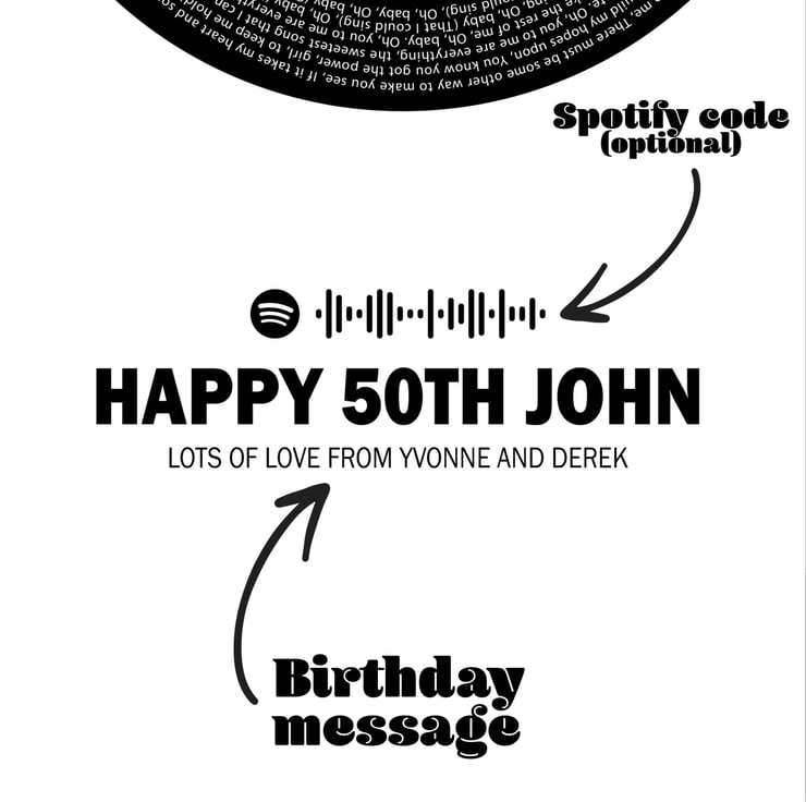 At no extra cost, an optional Spotify Code can be included, enabling the ability to scan and listen to the track on Spotify.