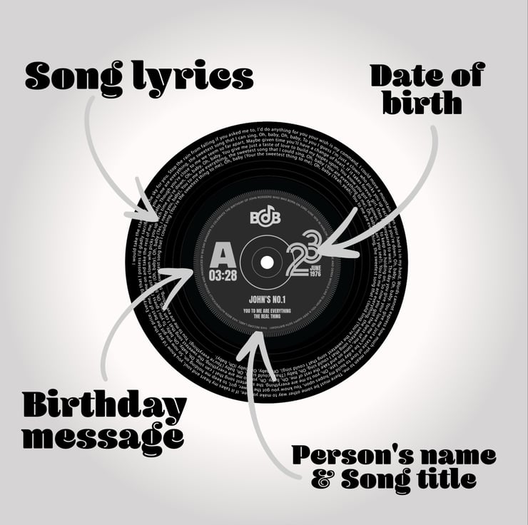 Aa part of my 'Labels & Lyrics' collection this Art Print brings the bold, nostalgic look of a vintage vinyl label into a personalised A4 artwork made for celebrating a milestone birthday.