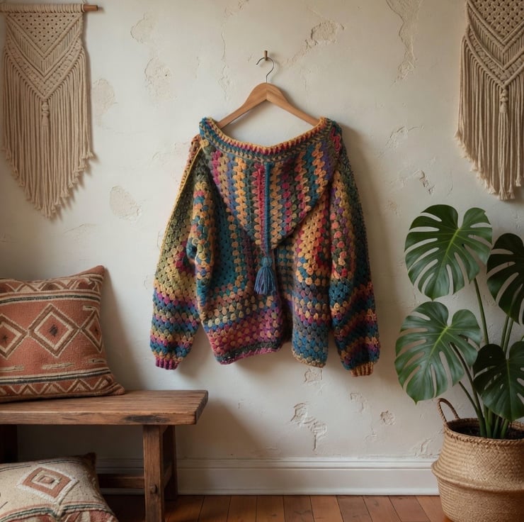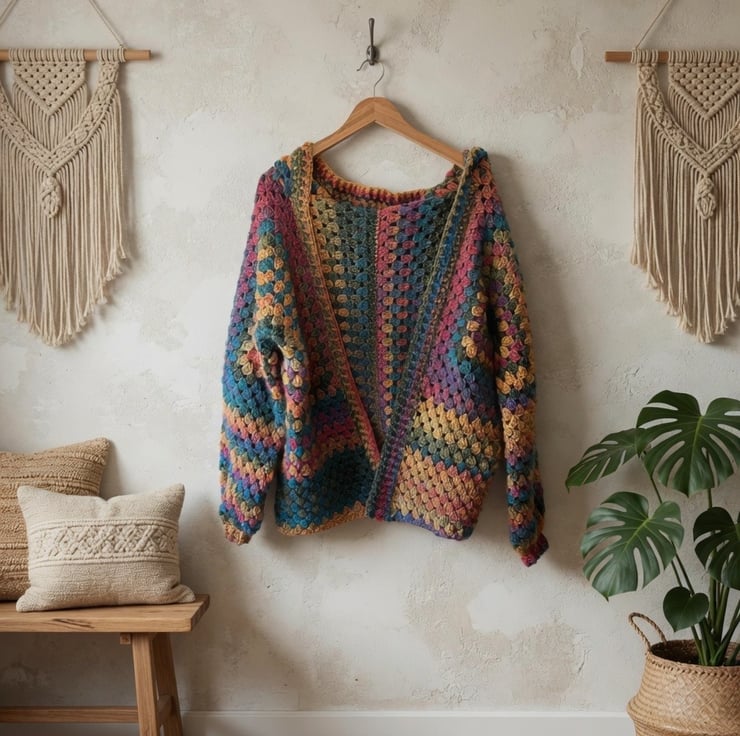 Cosy up in this vibrant, handmade crochet cardigan jacket!