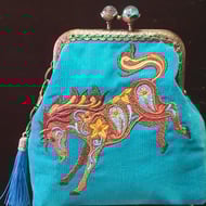 The metal frame has unusual rose kiss lock clasp.