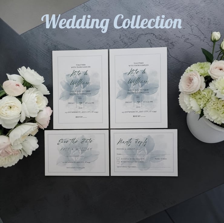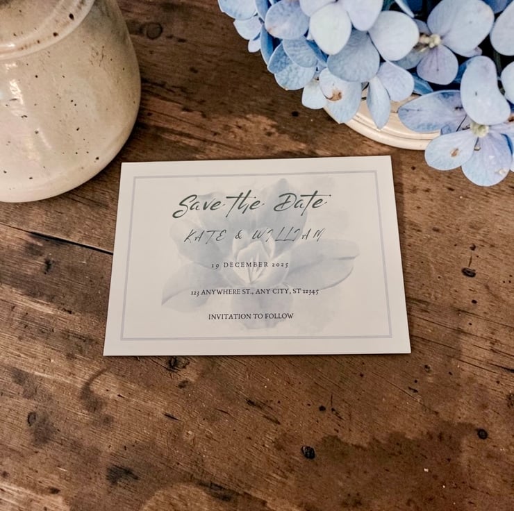 Announce your special day in refined style with this Blue Floral Watercolour Save the Date card. With its soft watercolour background and delicate floral detailing, this design adds calm sophistication and sets the perfect tone for your celebration.