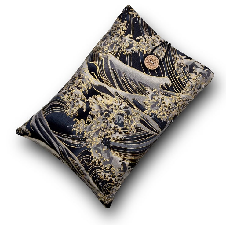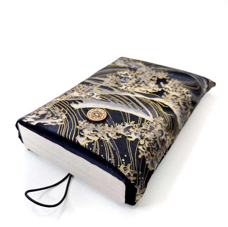 Japanese Wave Book Sleeve – Cotton Book Protector with Coconut Button
