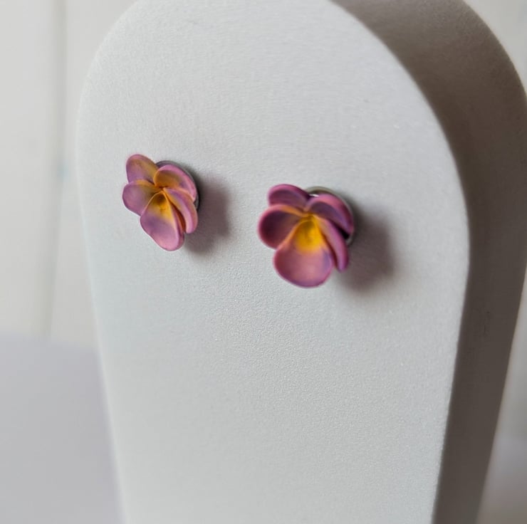 Sweet and simple, these pansy studs are mounted on a stainless steel post. Delicate, beautiful and perfect for flower lovers.