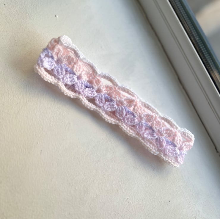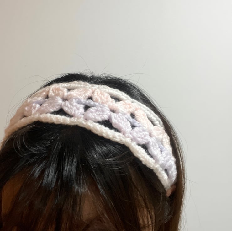 Delicate handmade crochet headbands featuring a beautiful floral pattern in soft pastel tones. Made with gradient yarn, each piece has its own subtle color transitions-so no two headbands are exactly the same.