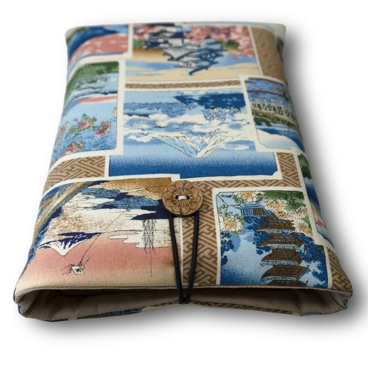 This sleeve is made from quality Japanese cotton and fully lined with soft cotton to help protect your books from scuffs, scratches, and everyday wear. It is lightly padded for added protection and fastens with a secure elastic loop and coconut button, keeping your book safely enclosed while you're on the move.