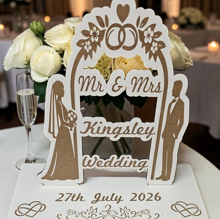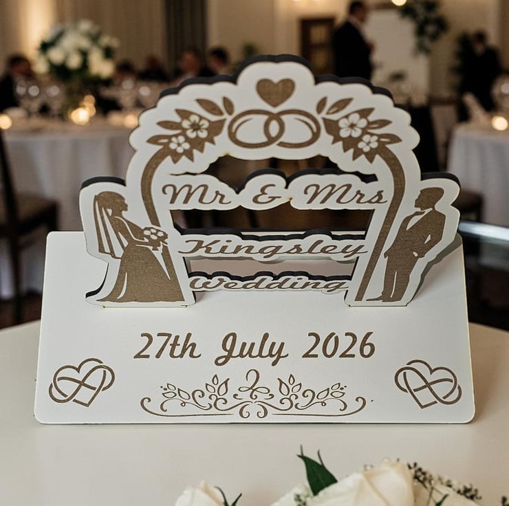 Add a touch of timeless romance to your special day with this beautifully crafted personalised wedding arch centrepiece. Designed to create an unforgettable focal point on any wedding table, this unique piece blends modern precision with classic charm the perfect finishing touch for your celebration décor.
