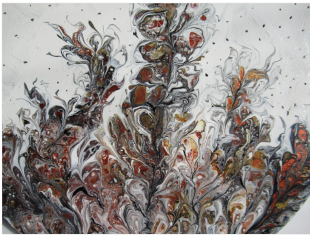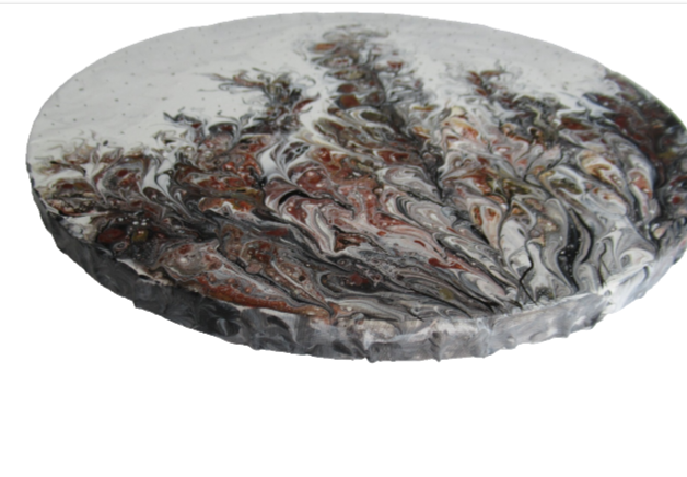 I chose acrylic pouring for its unpredictable, liquid movement. The style is abstract, focusing on how heavy metallics and dark tones interact to create natural, mineral-like textures. Using a mix of gold, silver, black, and green, I aimed for a high-contrast, sophisticated look that feels both earthy and modern.