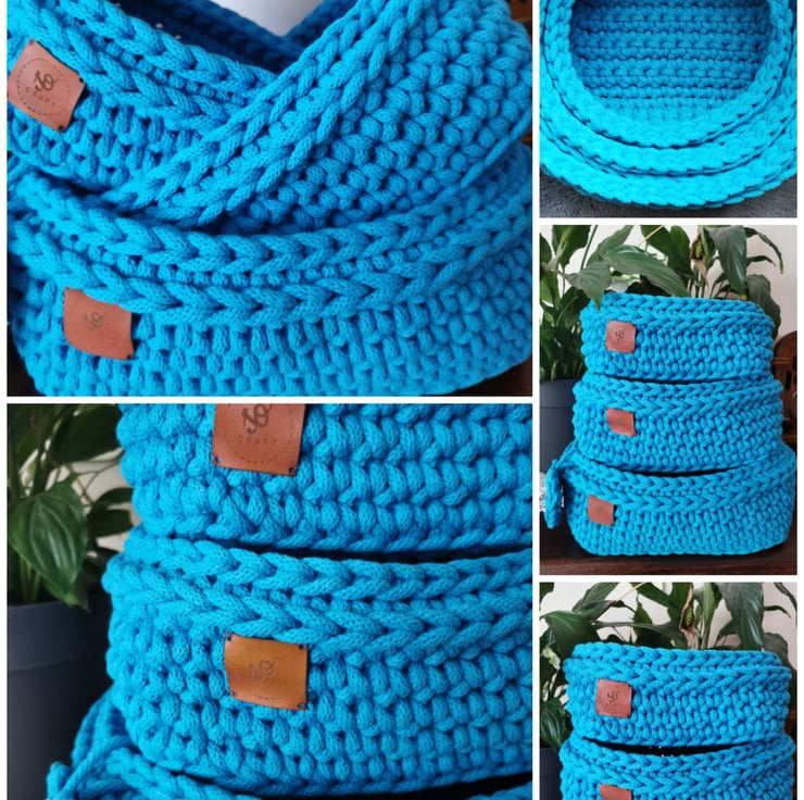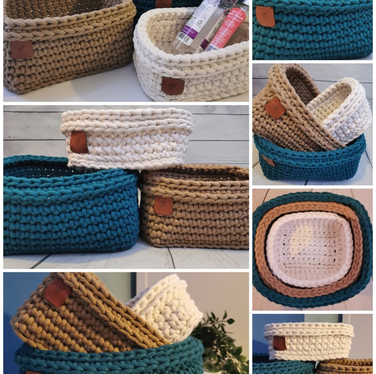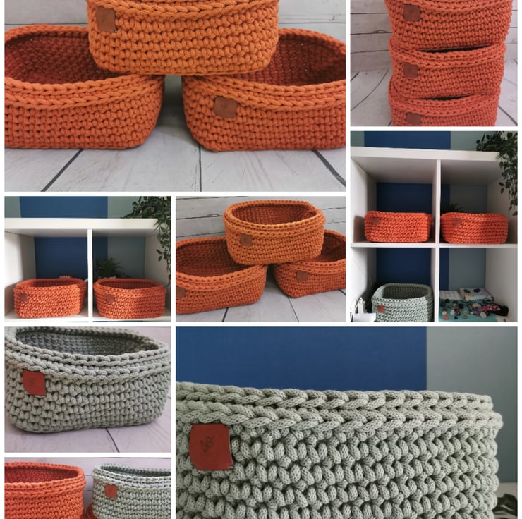 Beautiful crochet baskets in ractangular shape, ideal for organising and storing all sorts of bits and bobs around your home. Perfect for your living room, bedroom, bathroom or kids room. All baskets are made from very good quality 5mm cotton cord.