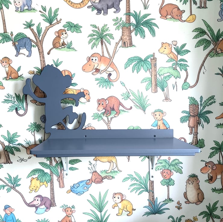 Bring a little charm and character to your home with this fun monkey wall shelf. With its playful silhouette and practical design, it's perfect for adding both storage and personality to a nursery or child's bedroom.