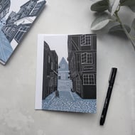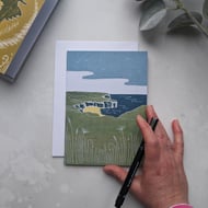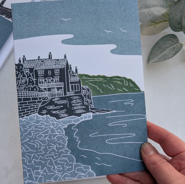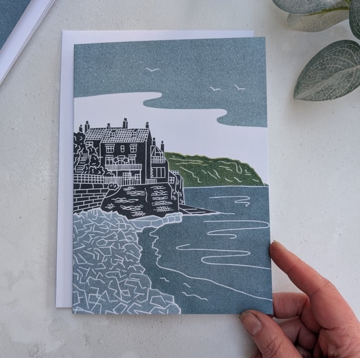 Robin Hood's Bay greetings card, professionally printed in the UK from my original linocut print.