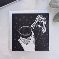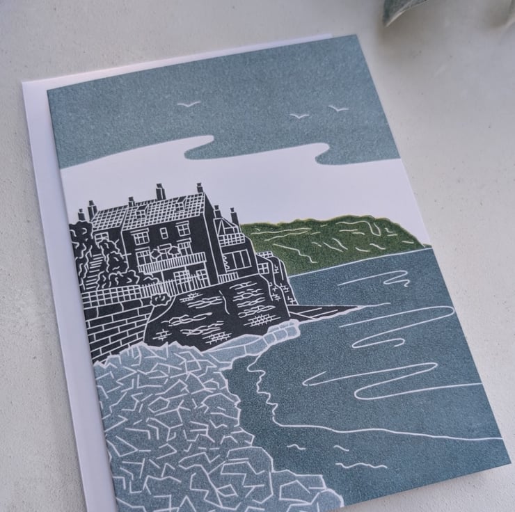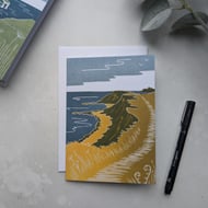 This card is based on my Whitby Pier linocut print. The original print was inspired by a photo I took on the North Beach on a cold Boxing Day one year whilst going on a family walk.
