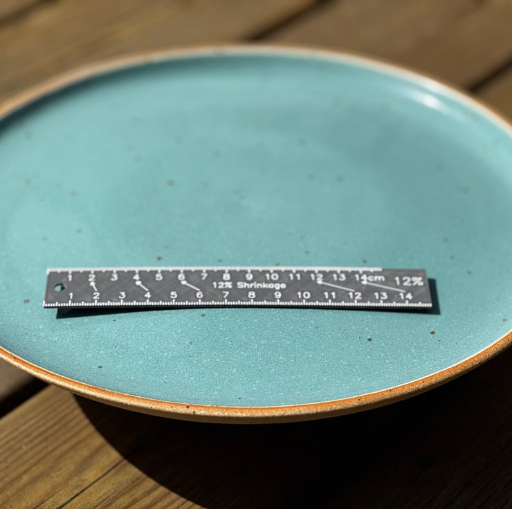 The standard ruler is calibrated for 12% shrinkage, but custom percentages can be made to suit your clay body - just let me know what you need.