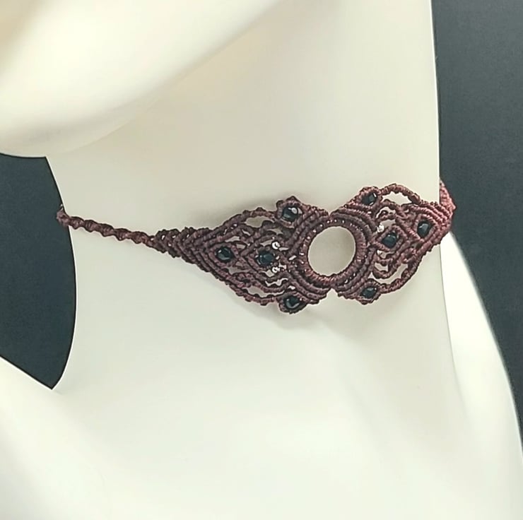 This lovely handmade choker necklace was made using waxed nylon cord and features tiny black crystal beads with metallic silver bead highlights. A slide knot fastening ensures a perfect fit for all neck sizes. Complete with presentation box.