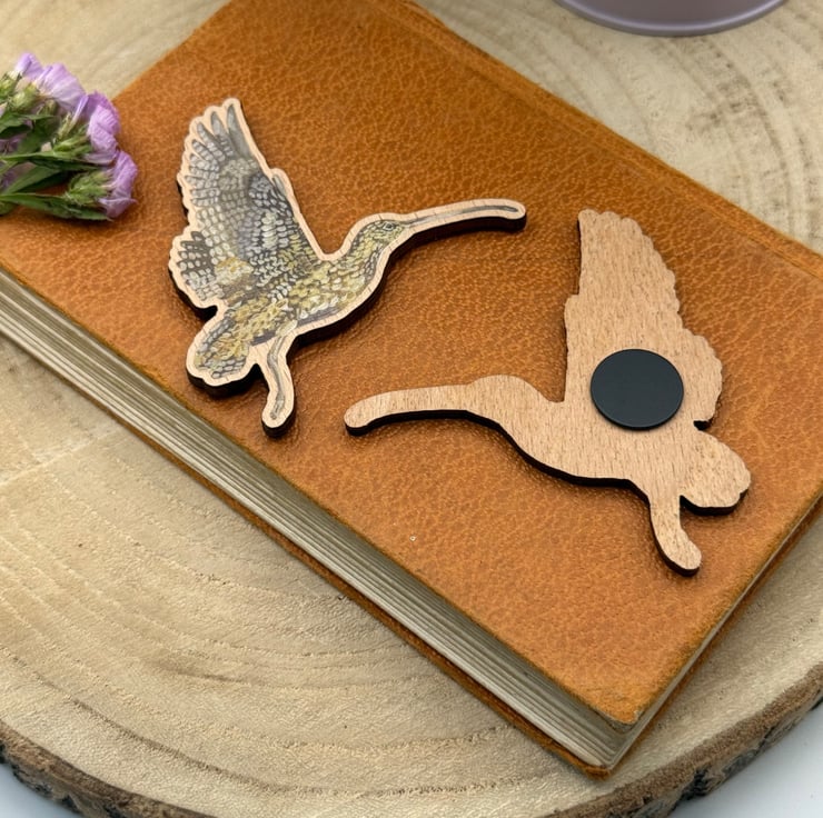 A unique natural magnet for your fridge or magnetic noticeboard with my Curlew in flight design. These beautiful birds are a firm favourite for many bird lovers. They are a large wader with impressive curved bill and haunting call.