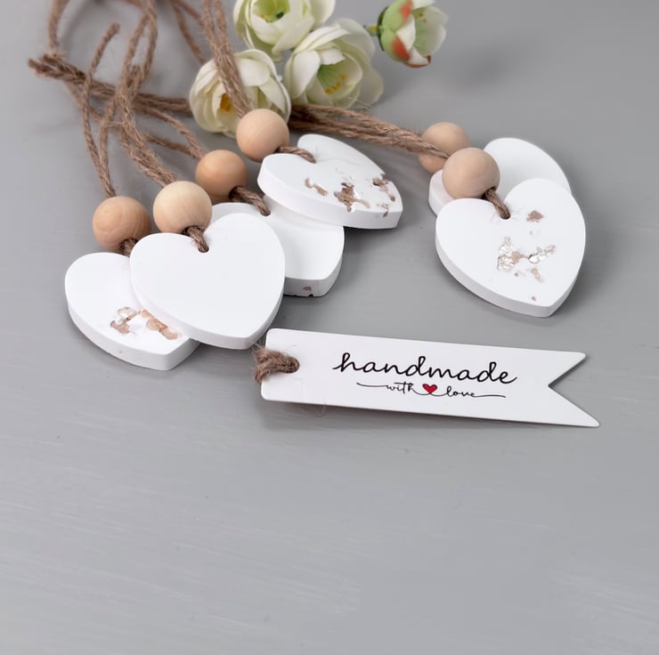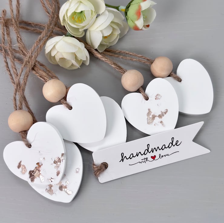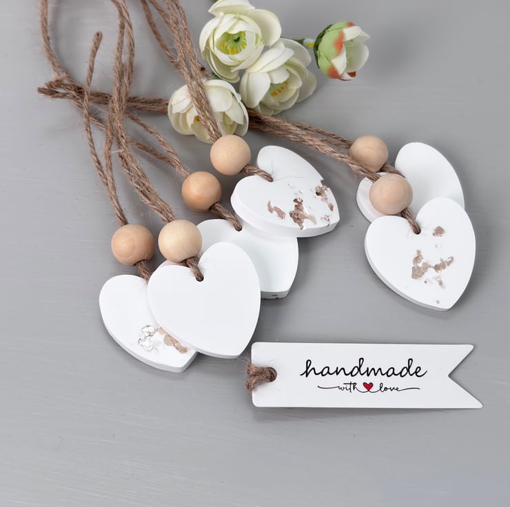 Handcrafted eco resin heart tag, made using sustainable eco resin casting powder materials for a beautiful, low-waste alternative to traditional resin.
