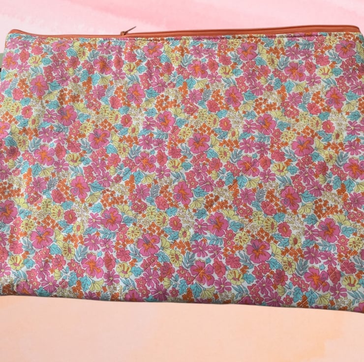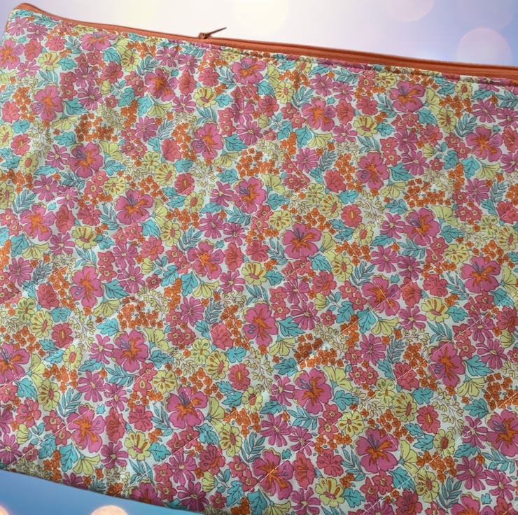 Summery Floral Fabric which, is padded and quilted to protect your device.