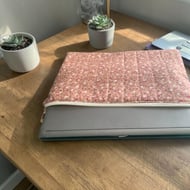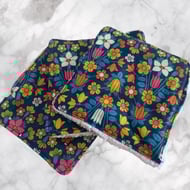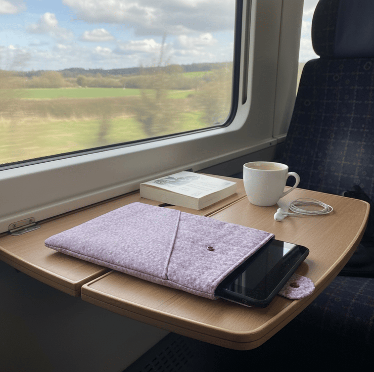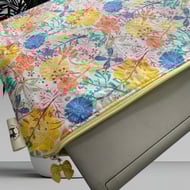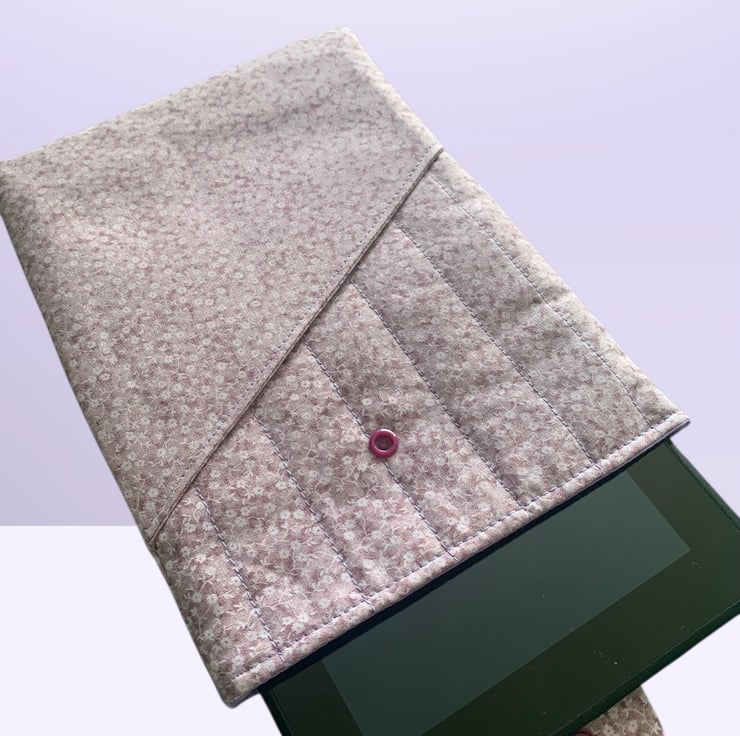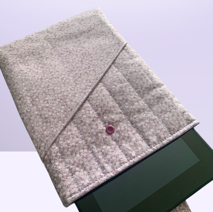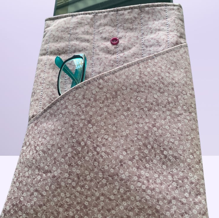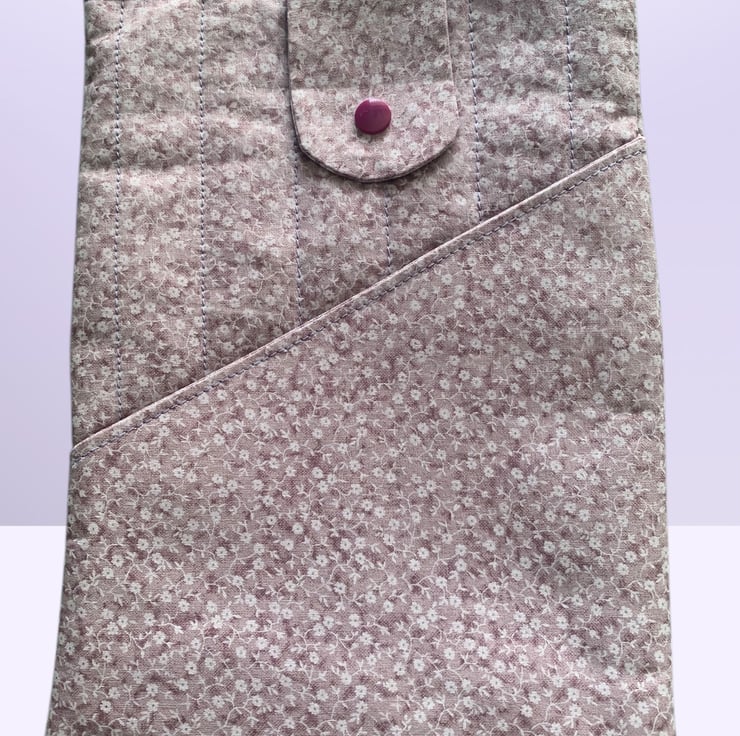 The case is made from a lilac, ditsy floral, cotton fabric.