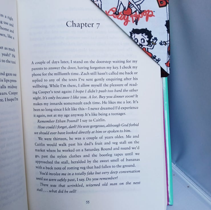 Book Mark for the corner of your pages made from Betty Boop Fabric. A great addition to you Betty Boop Collection. Made from 100% Cotton fabric. Measure 3.75" x 3.75" The fabric has had interfacing added inside for support