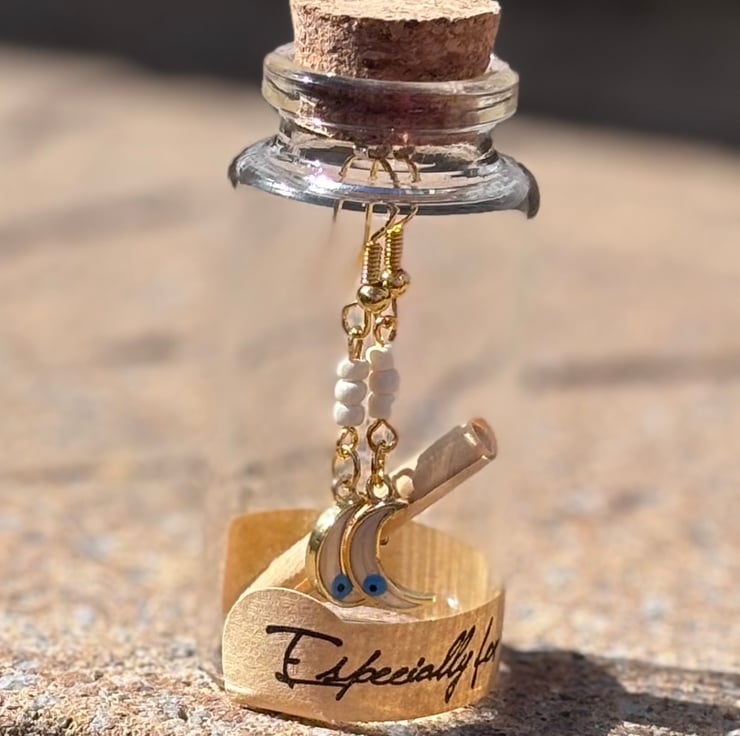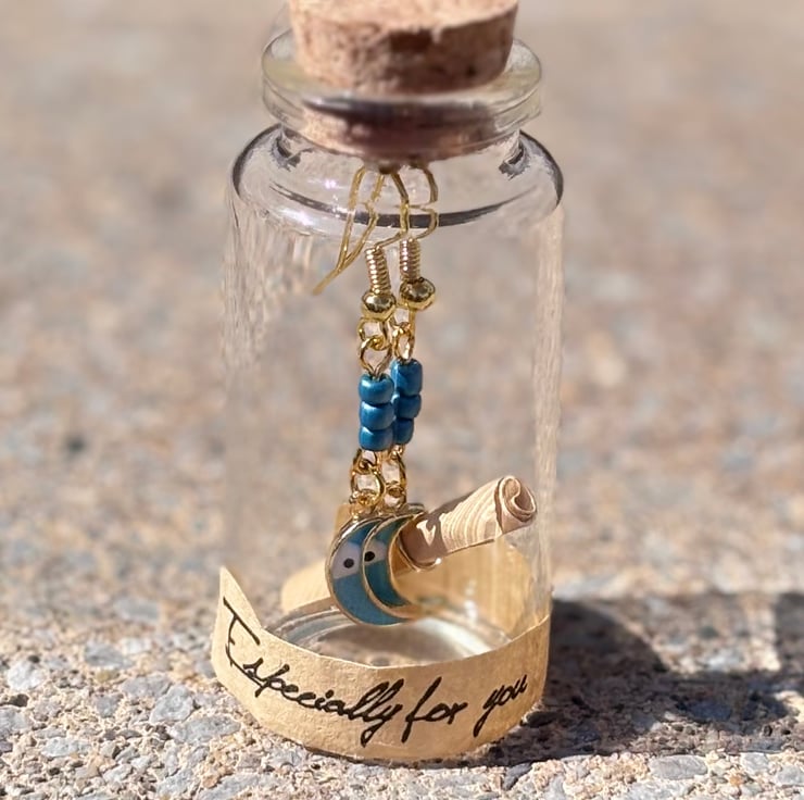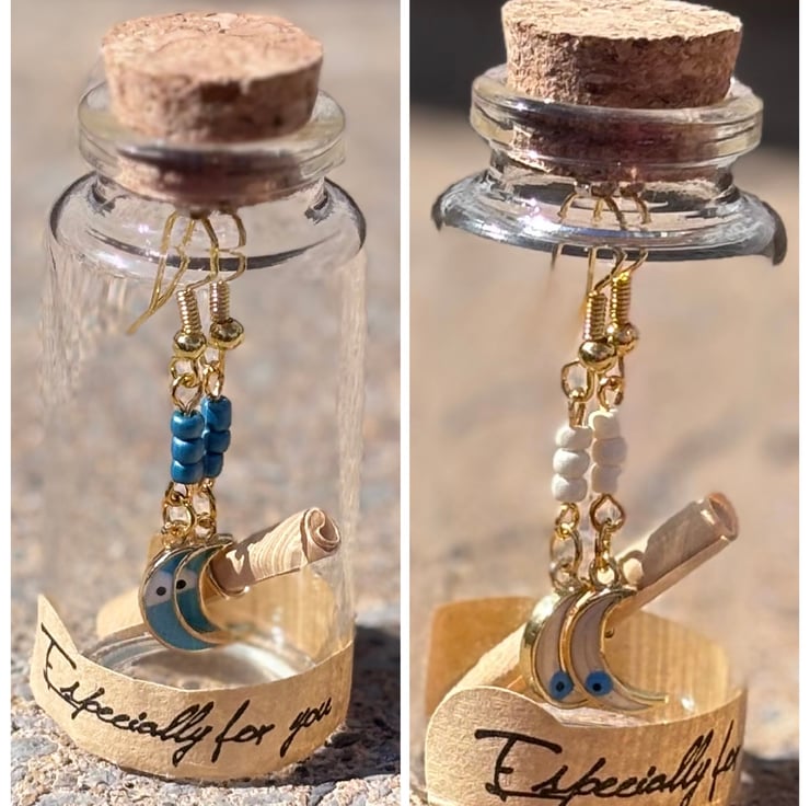 Looking for a gift that's as unique and meaningful as the person receiving it? These handmade Celestial Moon Earrings come tucked away in a charming glass bottle, making the unboxing experience truly magical.