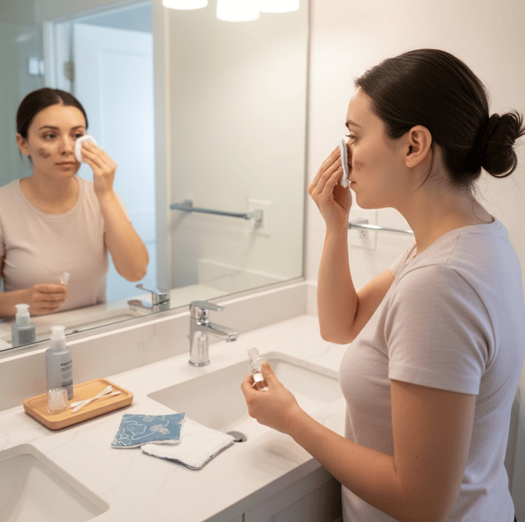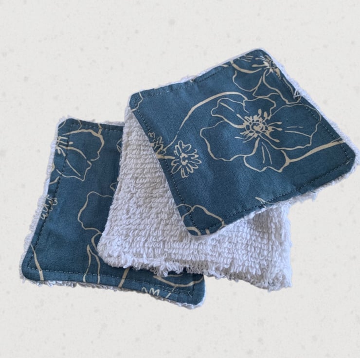 This listing is for reusable face wipes made from towelling and backed with an abstract poppy design.