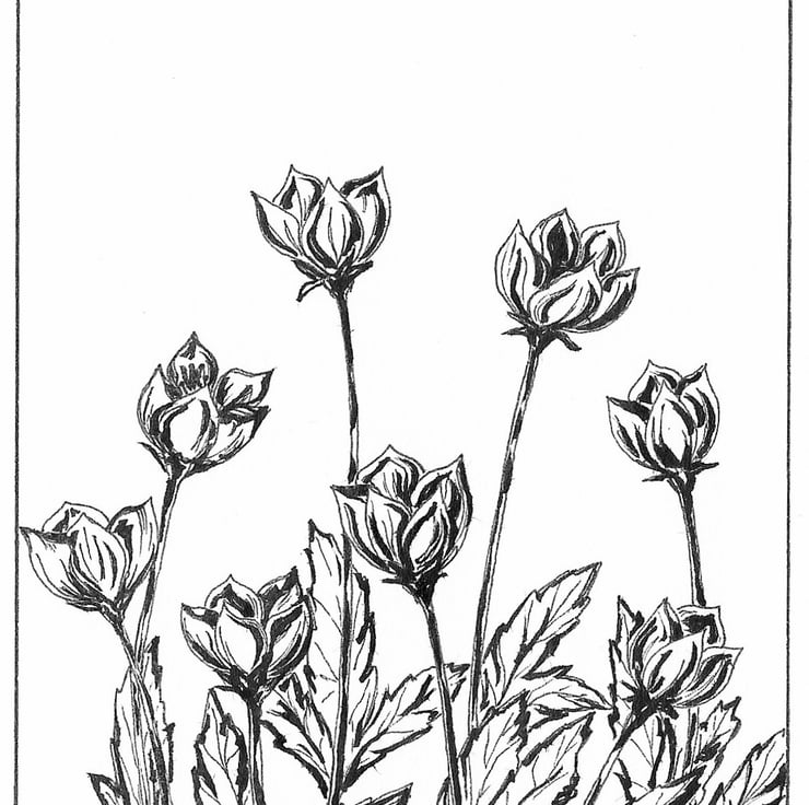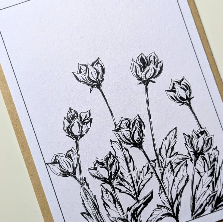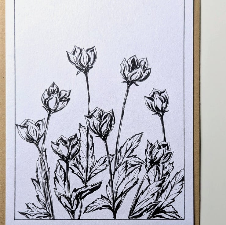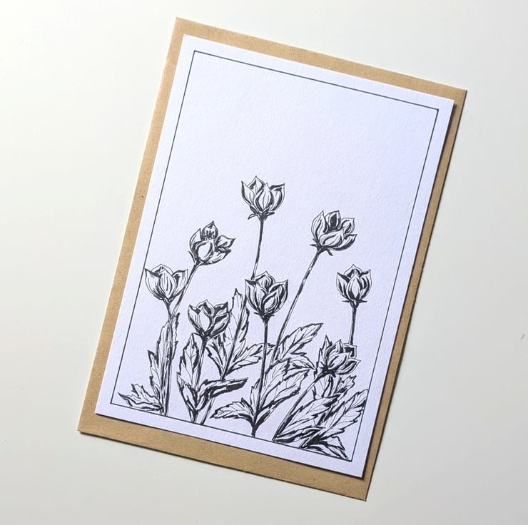 A minimalist, monochromatic ink painting featuring a simple flower design. This piece would fit perfectly into any home, adding a classic touch to any room.