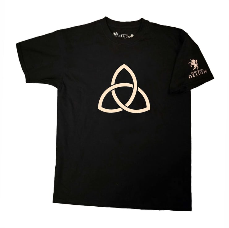 Experience the fusion of tradition and contemporary elegance with Scottish Design. Elevate your style with our Celtic Trefoil Knot t-shirt today.