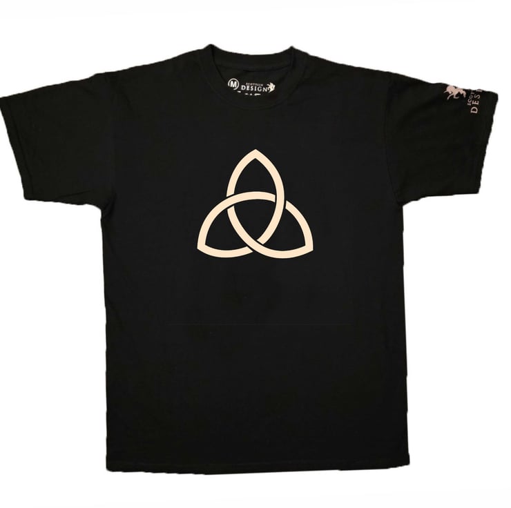 Embrace the rich heritage and profound symbolism with our Celtic Trefoil Knot t-shirt, elegantly adorned with shimmering golden foil. Rooted in both early Christian beliefs and ancient Celtic traditions, the trefoil knot represents the Holy Trinity and interconnected natural forces.