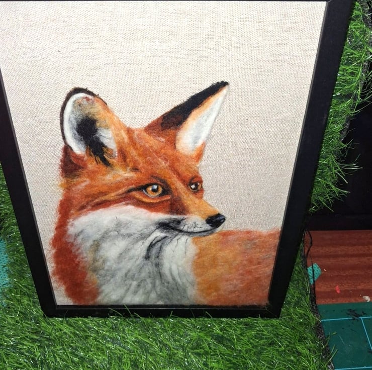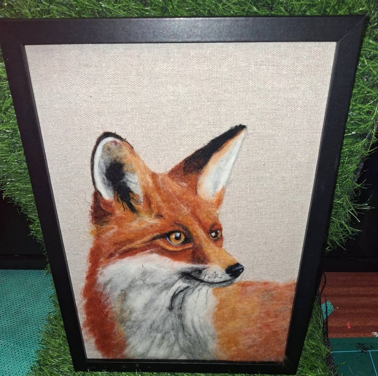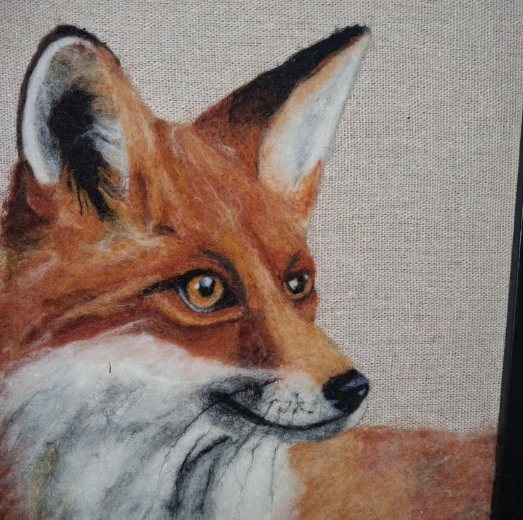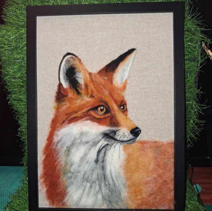 Handcrafted needle felted fox portrait created from soft wool fibres, featuring rich russet tones, bright expressive eyes and delicate. This charming woodland fox artwork is carefully sculpted by hand, giving each piece unique texture and character. A cosy rustic wall decoration, perfect for animal lovers, nursery décor or cottage style interiors. Ideal as a thoughtful handmade gift for birthdays, housewarmings or fox enthusiasts.