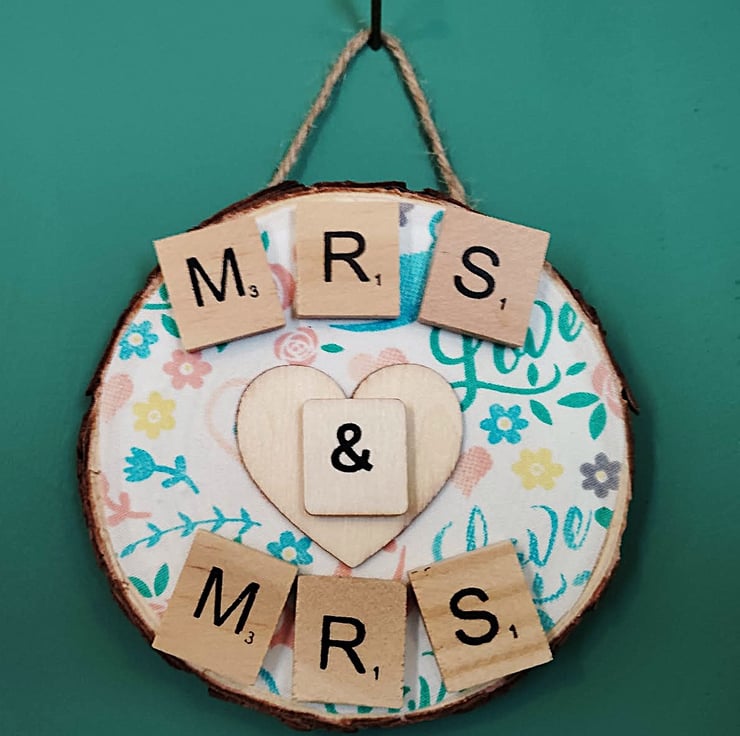 A fun and colourful hanging decoration for a wedding or new married couple.