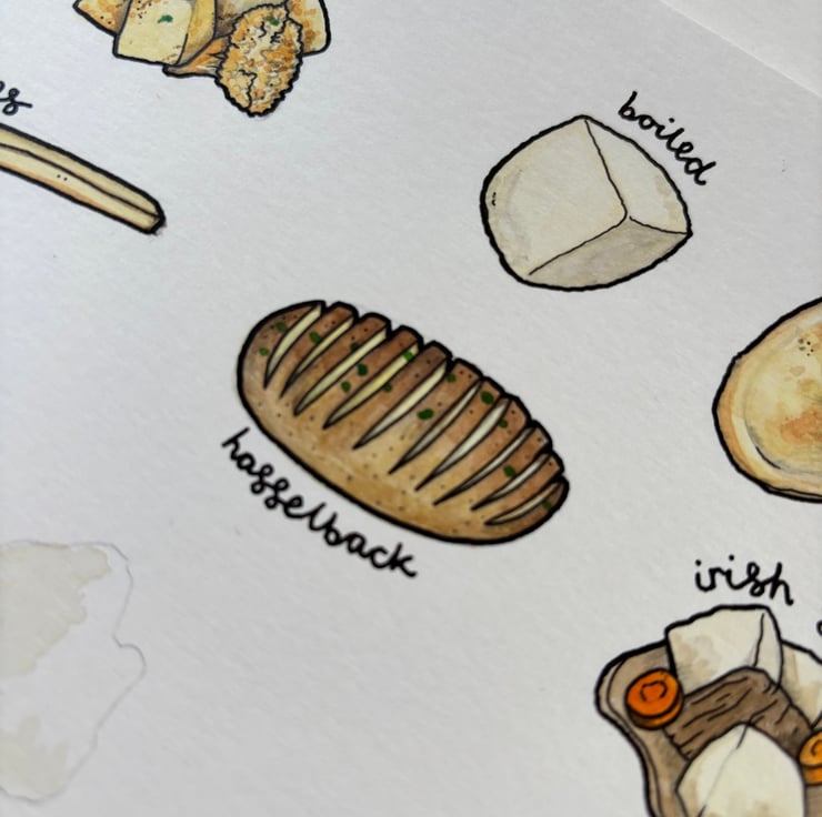 A lovely print of an entire alphabet of potato - and potato dishes.