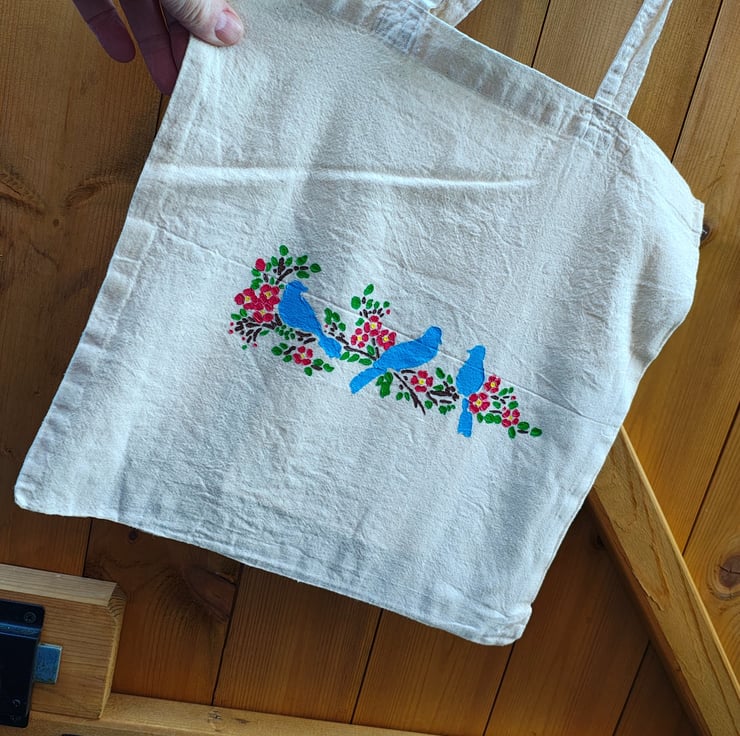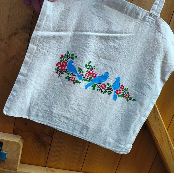 Cotton tote bag with a hand painted design on the front. Great as a gift or a gift bag or to use for shopping or even to put your laptop in.