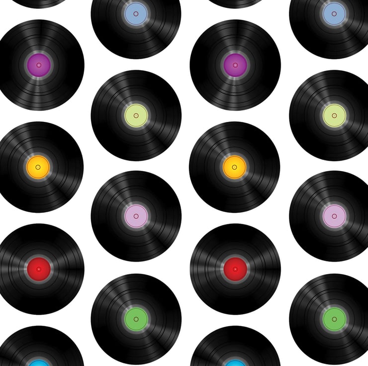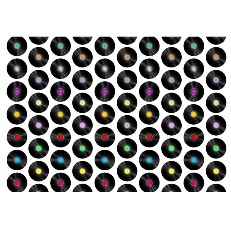 One of our gift wrap designs with a vinyl record design on a white background Ideal gift wrap for the record lover.