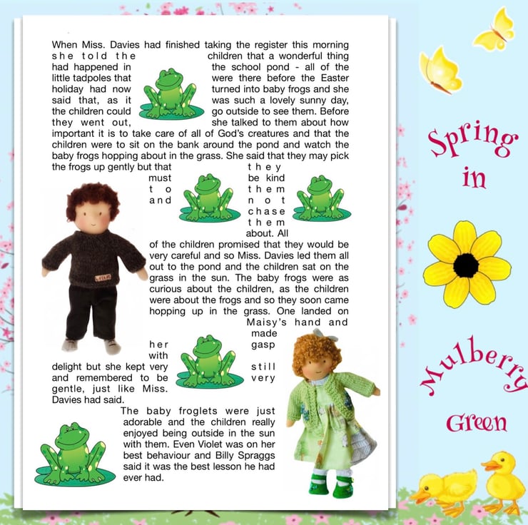 There are other children in Maisy’s class at school - Violet, Billy with his pet rabbit, Amber, Tilly, Rosie and her kittens, Amelia, Ruby, Marigold, Bobby with Max the dog, and the twins Oliver and Olivia, who have a puppy called Oscar. The dolls are all 26cm tall and baby Daisy is 16cm. Maisy and Mo love nothing more than having adventures with their friends. You can read about their adventures on my Facebook and Instagram pages - Maisy Muffin Rag Dolls and on my Mulberry Green Pinterest boards.