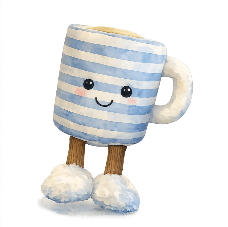 Each sheet showcases a repeating pattern of a cute striped mug character with cosy slippers, alongside your chosen name for a truly unique finish. Ideal for baby showers, birthdays, new baby gifts, or anyone who loves cute, cosy designs.