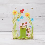 The card contains a pretty floral fused glass violets keepsake which symbolise faithfulness, modesty & loyalty. Although violets are the birth flower for the month of February I usually have a lovely display of them in my garden in April!