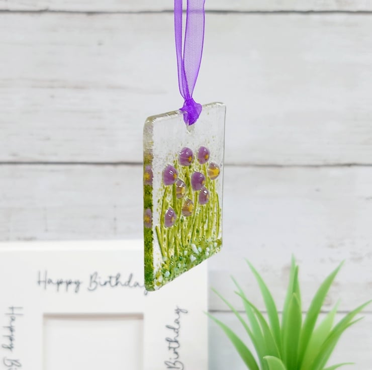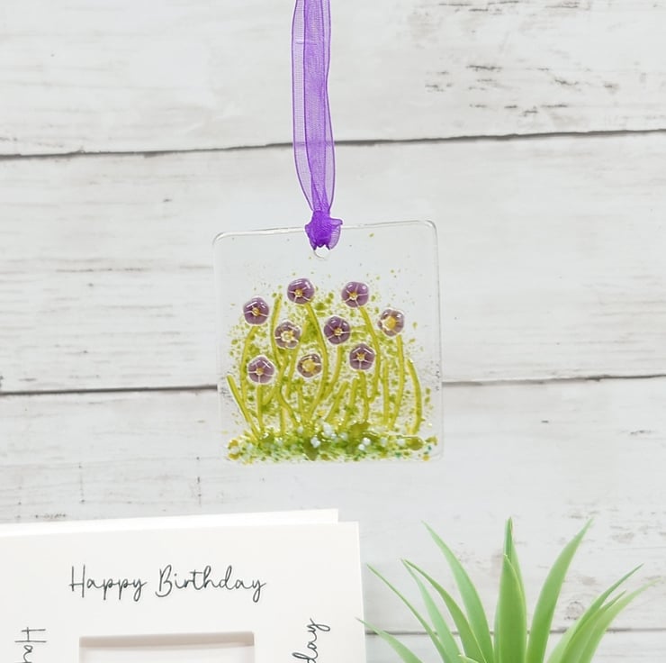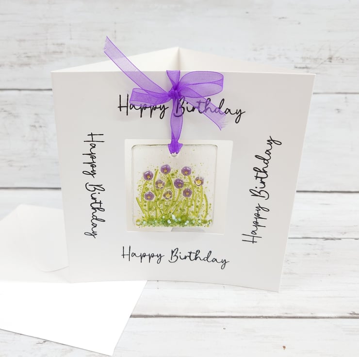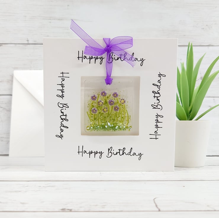 This fused glass violets birthday card is a great little gift and card in one to celebrate anyone's birthday.