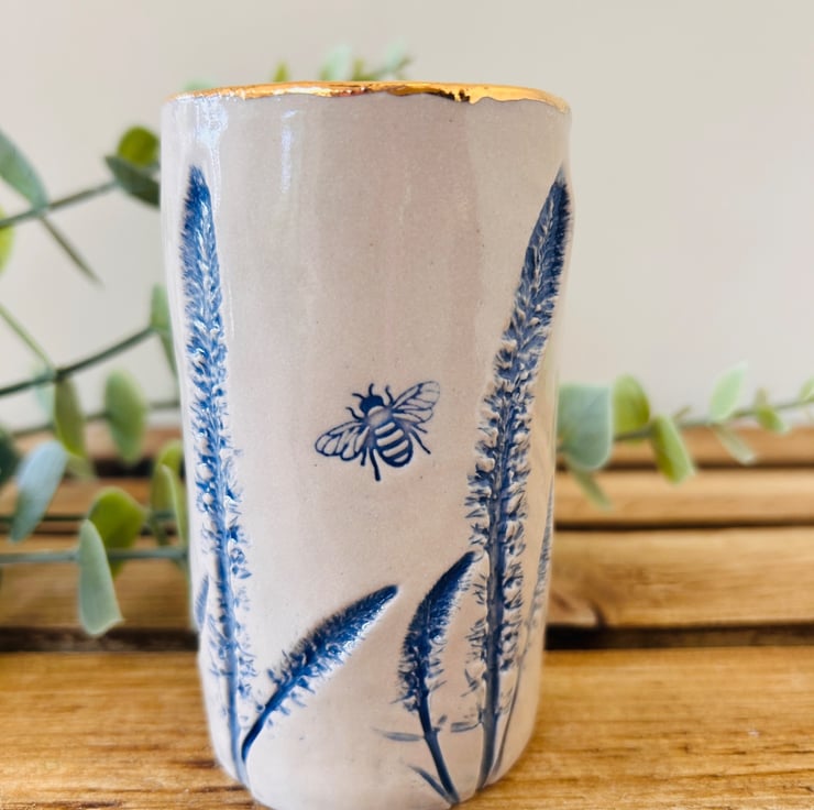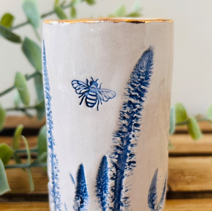 Each piece is individually pressed with real plants, allowing the clay to capture their delicate textures and intricate details. Because I use real plants in the making process, every vase is completely unique, no two will ever be the same. Some vases have the addition of a little bee pressed into them. Please refer to photos on each vase.
