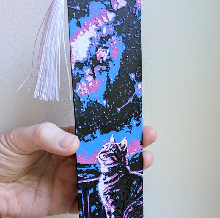 Each bookmark is printed in PLA, which is a plant-based plastic. It's lightweight but sturdy, and works well for something you'll use every day.