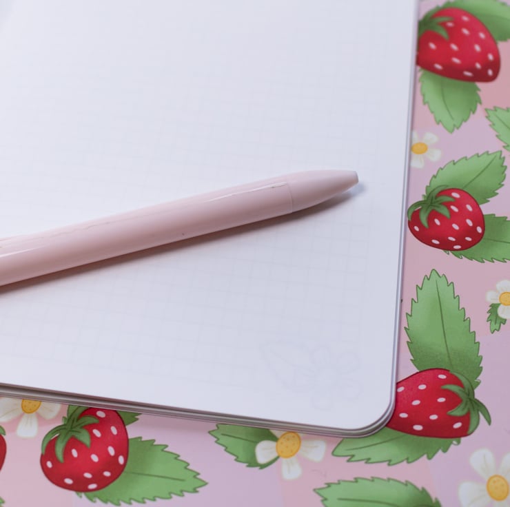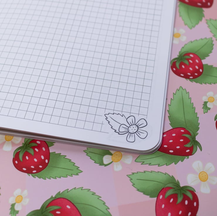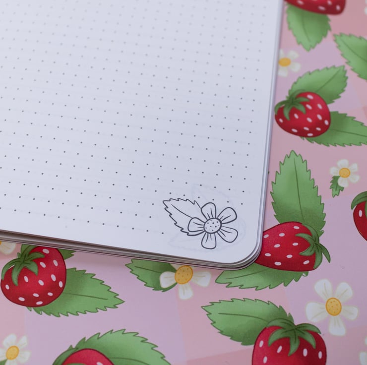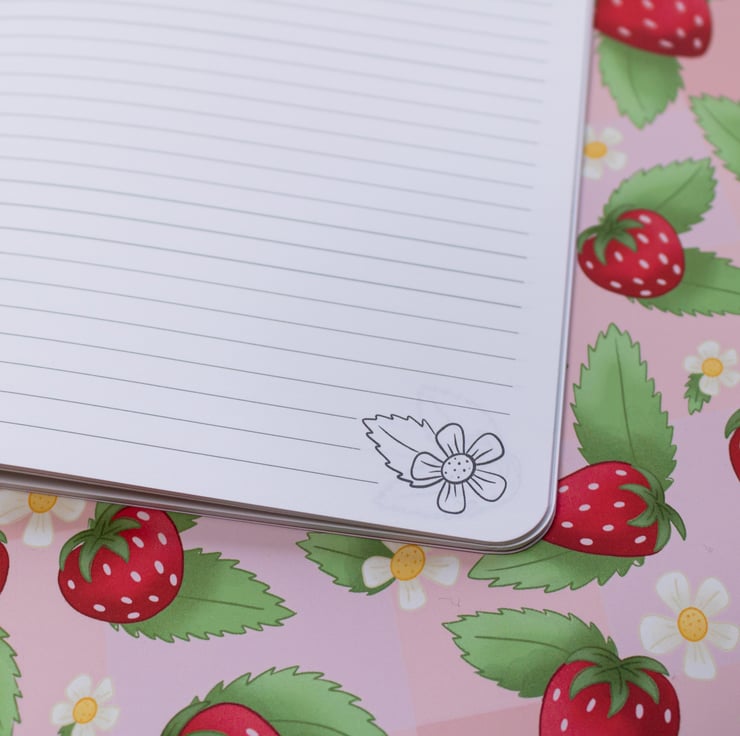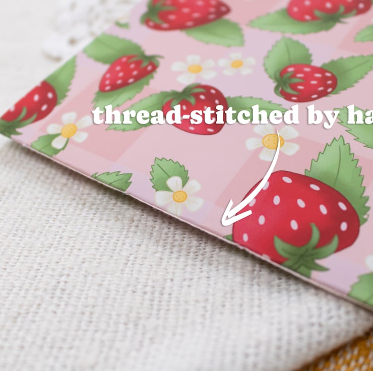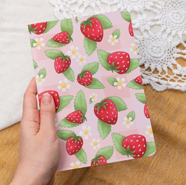 Welcome spring into your journalling life with this adorable strawberry pick-nick pattern handmade notebook.