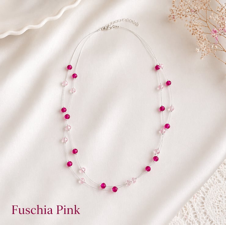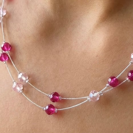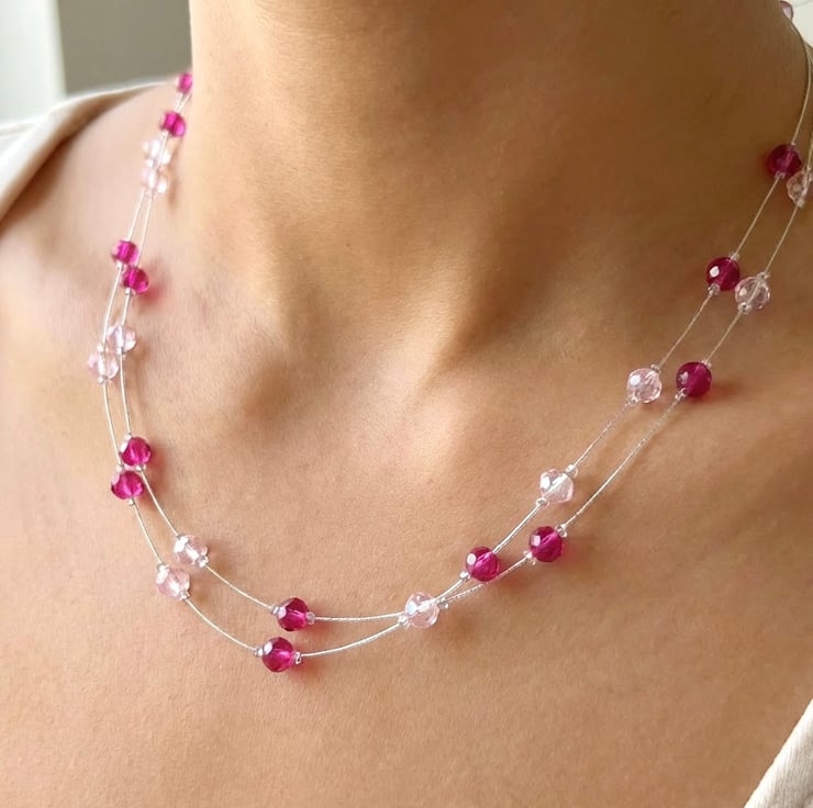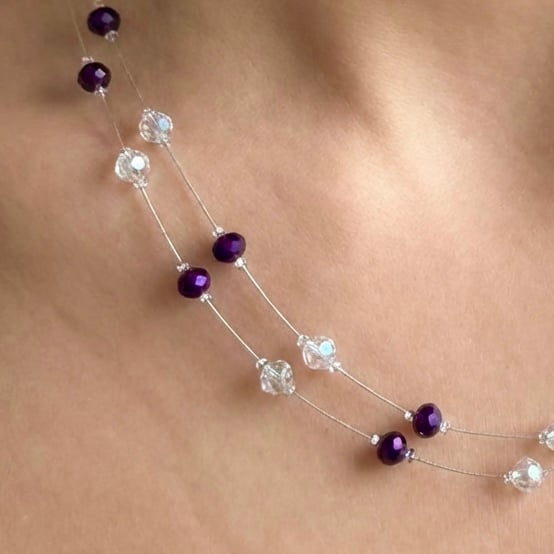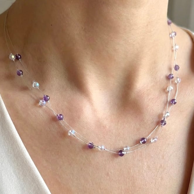 Add a subtle touch of elegance to your everyday look with these beautifully handcrafted 18" floating crystal necklaces.