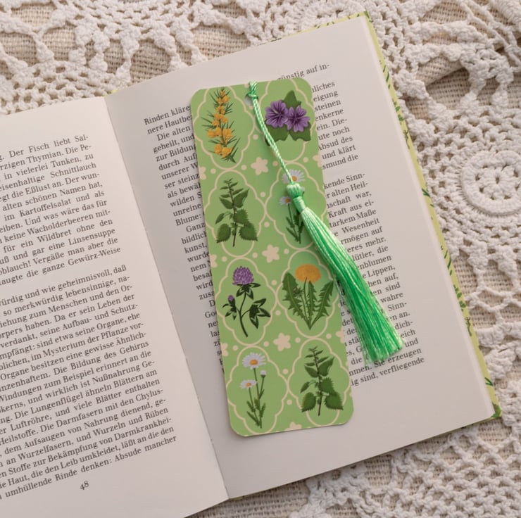 Step into spring with this colourful bookmark featuring local plants such as dandelion, ox-eye daisy, clover, gorse, mallow, nettle, sorrel and wild garlic. All of these plants can be foraged in the UK.